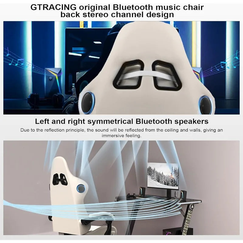 - 【Superior Design Features】The 360°rotating multi-directional racing-car rollers; the maximum inclination angle of the backrest of the gamer chair is 150°, with a retractable padded footrest and linkage armrests. When you're tired, you can pull out the footrest, recline the chair back, connect to bluetooth, and lie back in the chair to enjoy 3D surround music. This office gaming chair is your ideal seat for work, study and entertainment.
