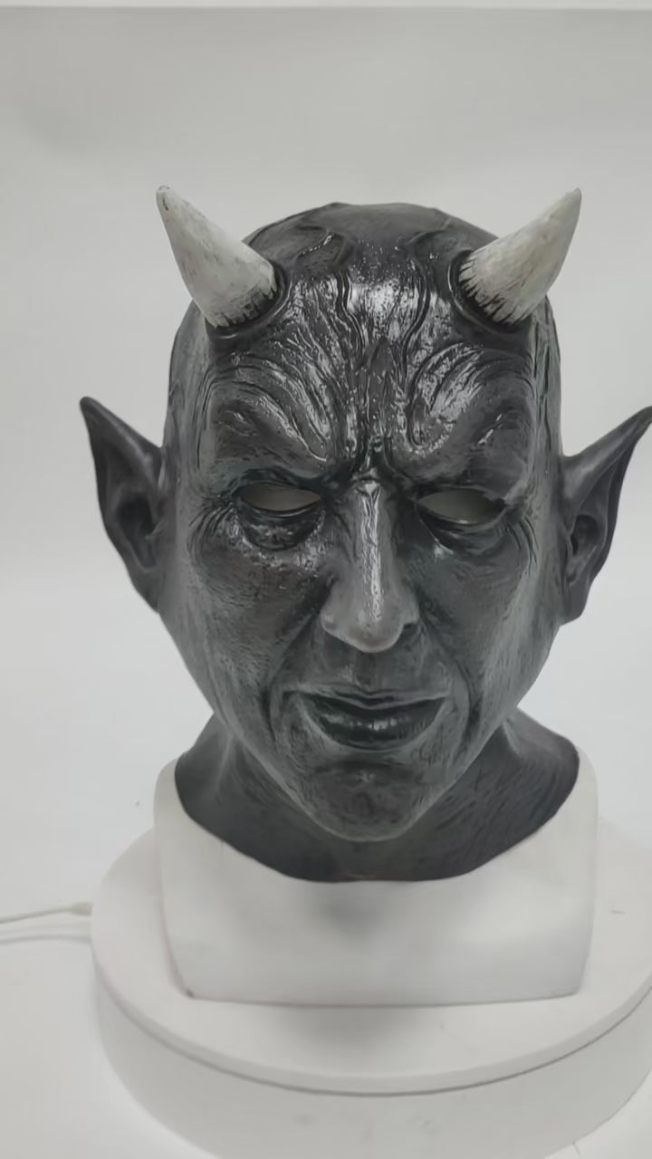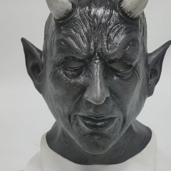 Halloween Mephistopheles Demon Horn Mask: Unleash your inner demon with this striking latex mask featuring Mephistopheles' horns. Perfect for Halloween and cosplay, it offers a terrifyingly realistic look. Comfortable and durable, this mask ensures you stand out at any spooky event or costume party.