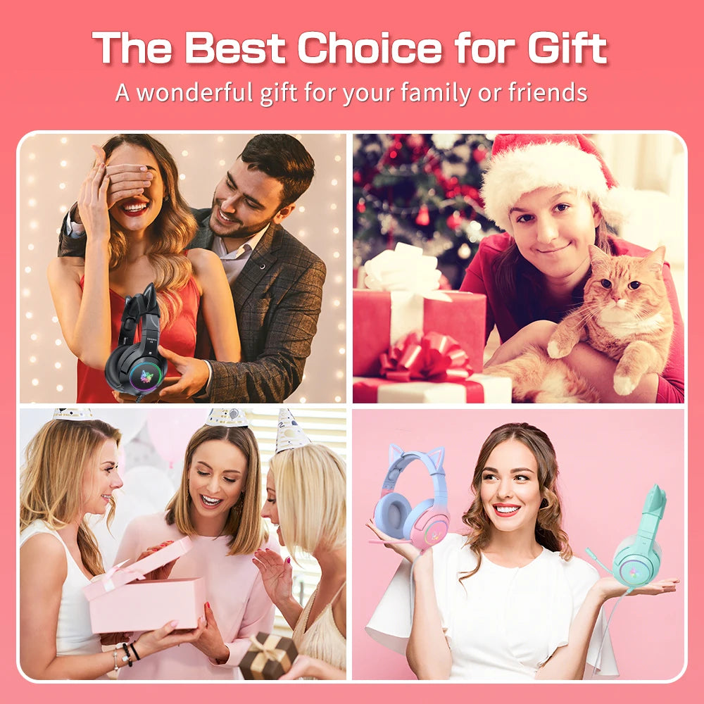 1.【Detachable Cute Cat Ear】 With a pink outlook and the detachable cat ears, this headset forms your gaming set-up to a new level of kawaii, automatically to attract everyone's attention.